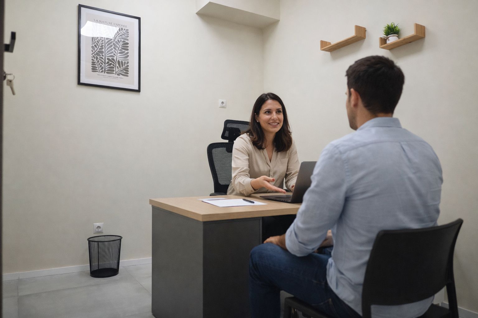 Oficina de 7,5 m² disponible por horas para reservar en un día, ideal para quienes necesitan un espacio privado o atender a sus clientes un día puntual.